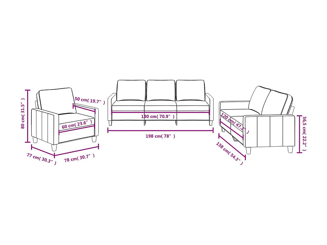 Juego de sofás con cojines 3 piezas tela rojo tinto
