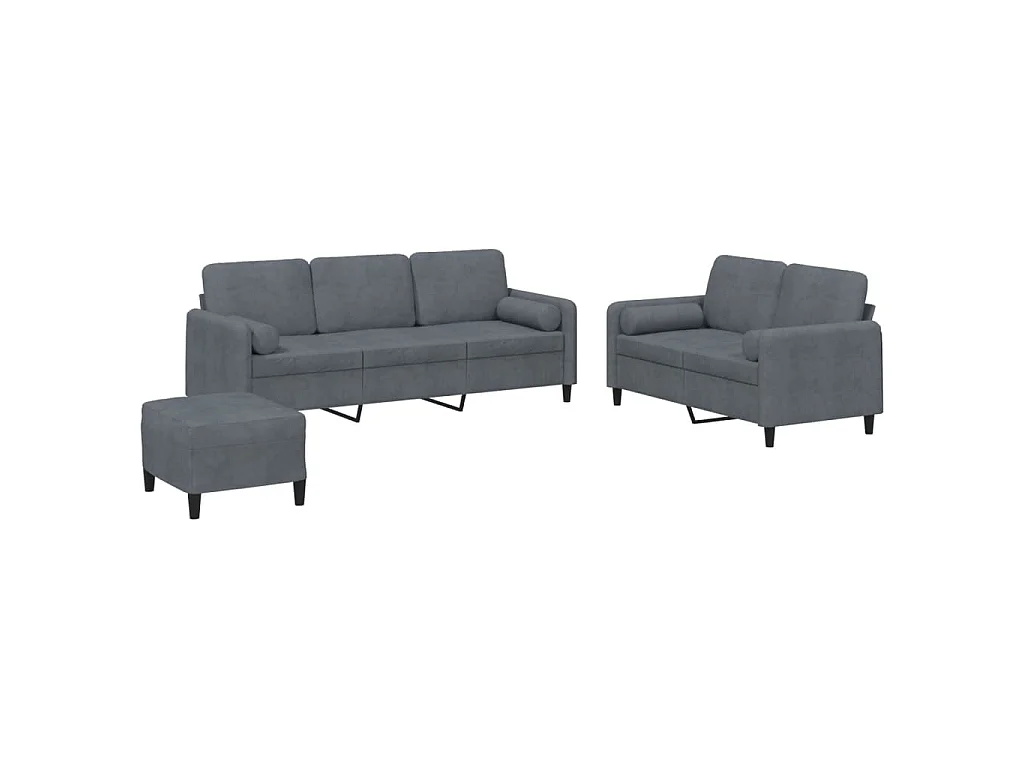 Juego de sofás con cojines 3 piezas terciopelo gris oscuro