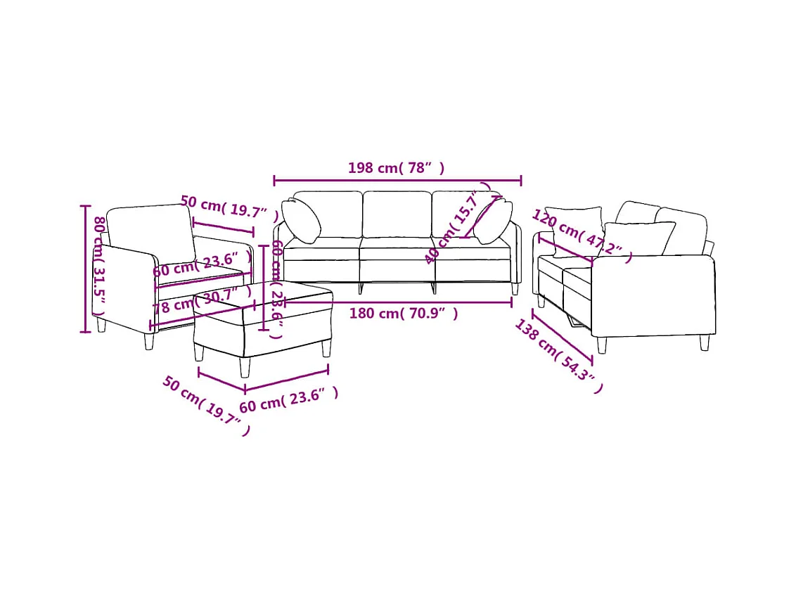 Juego de sofás con cojines 4 piezas tela gris taupe
