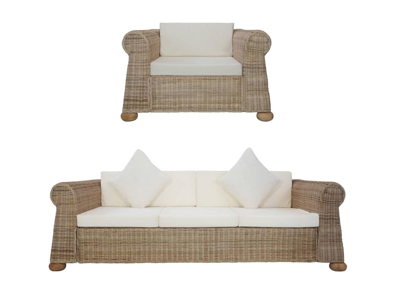 Juego de sofás de 2 plazas y de 3 plazas ratán auténtico