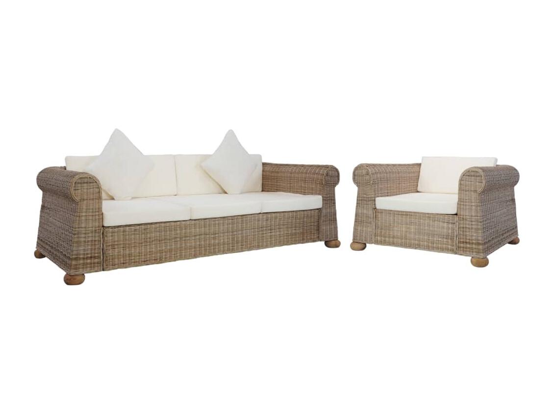 Juego de sofás de 2 piezas con cojines de ratán natural