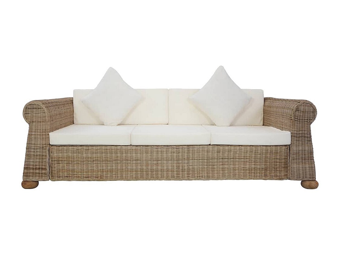 Sofá seccional de 3 plazas de ratán sintético marrón