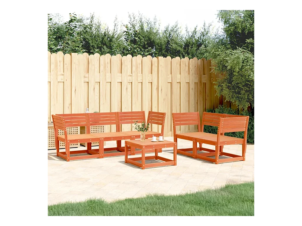 Juego de sofás de jardín 5 piezas madera maciza pino marrón cera