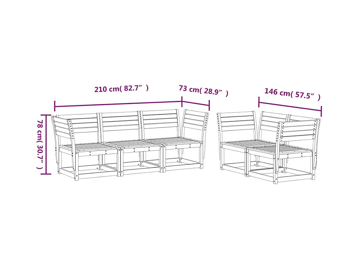 Juego de sofás de jardín 5 piezas madera maciza de pino