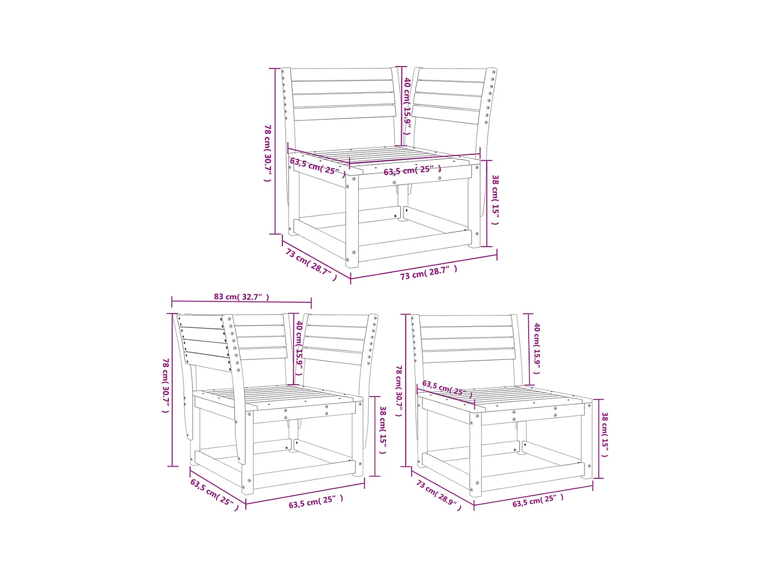 Conjunto de jardín 5 pzas madera maciza de abeto Douglas ES638131