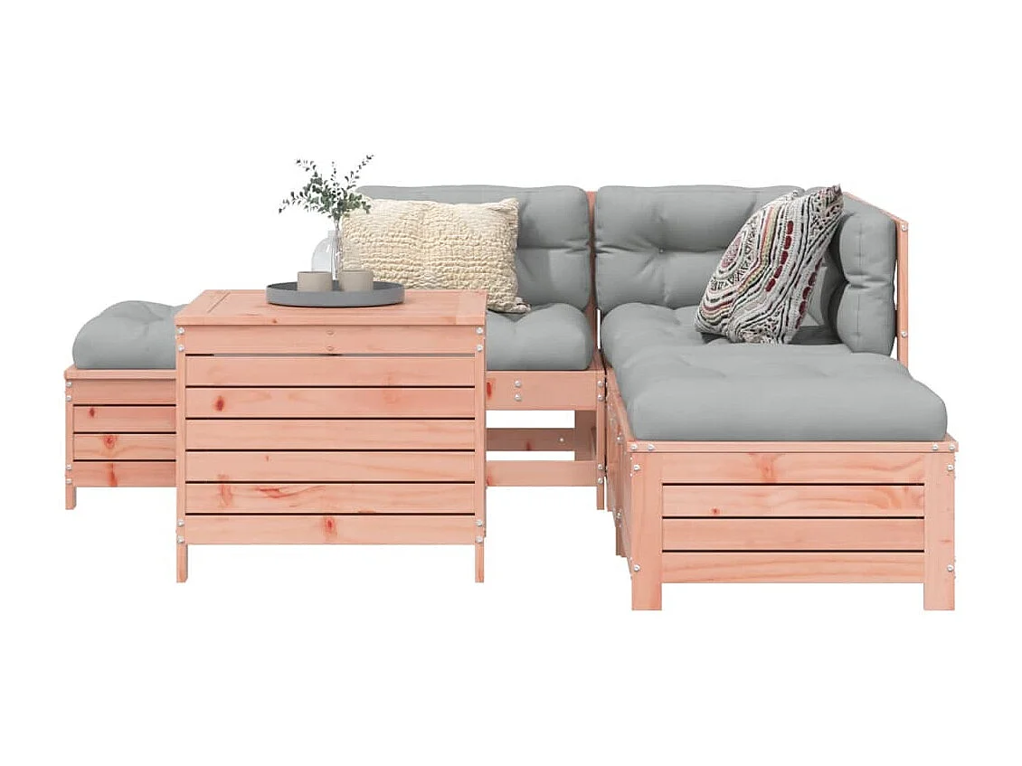 Juego de sofás de jardín 6 piezas madera maciza de abeto Douglas