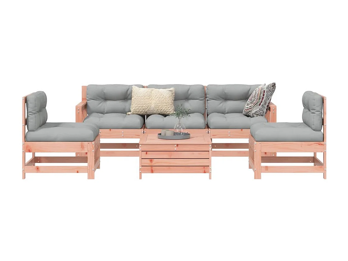 Juego de sofás de jardín 6 piezas madera maciza de abeto Douglas