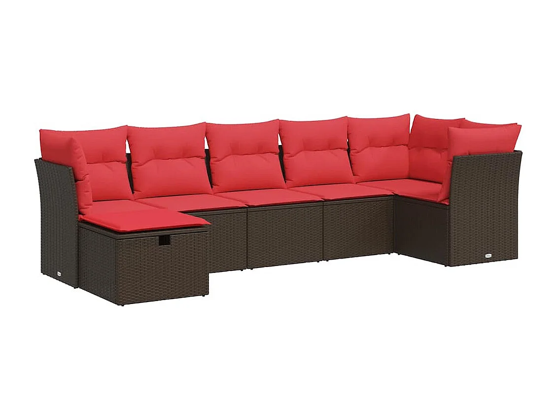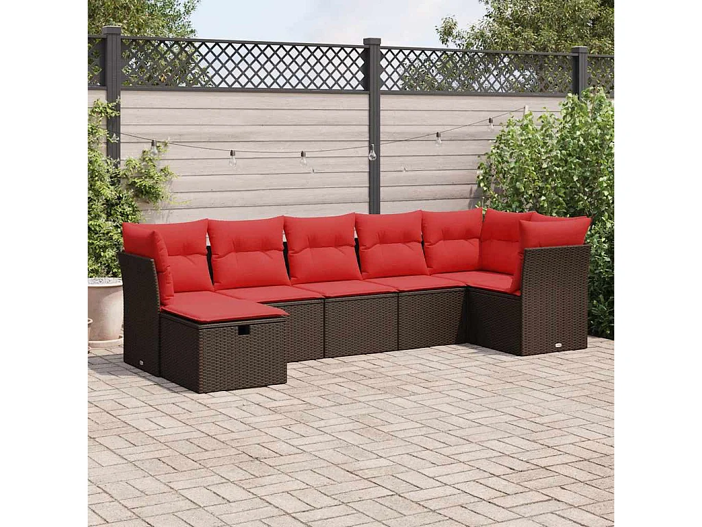 Juego de sofás de jardín 7 piezas con cojines ratán PE marrón