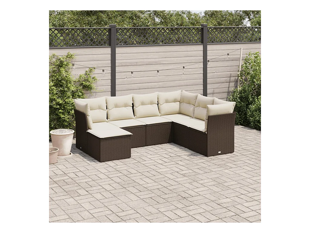 Juego de sofás de jardín 7 piezas con cojines ratán PE marrón