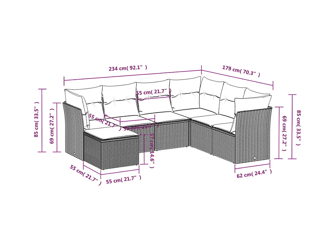 Set sofás de jardín 6 piezas y cojines ratán sintético marrón