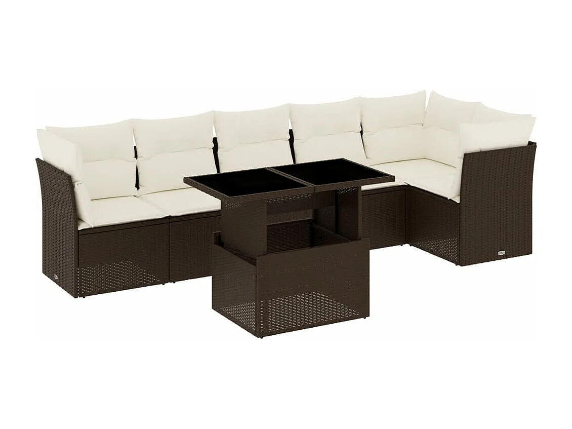 Juego de sofás de jardín 7 piezas con cojines ratán PE marrón