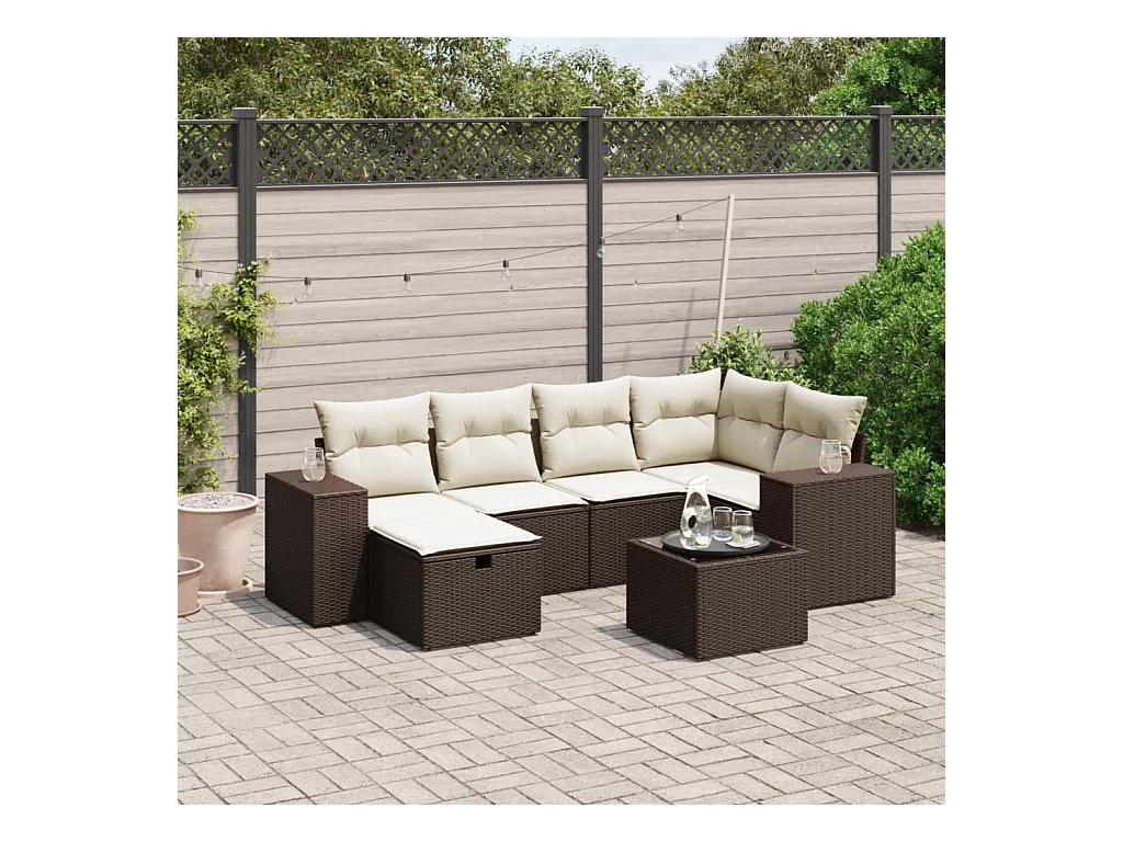 Set sofás de jardín 6 piezas y cojines ratán sintético marrón
