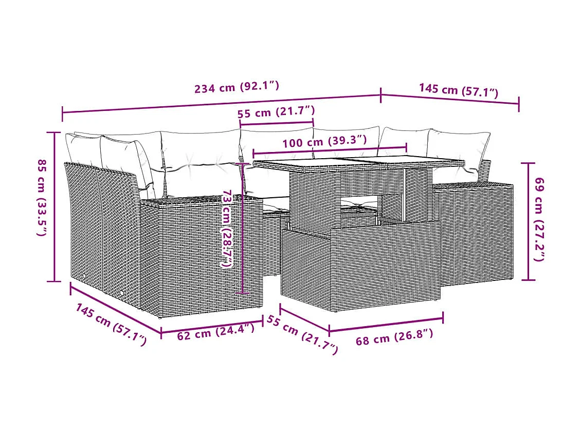 Juego de sofás de jardín 7 piezas con cojines ratán PE marrón