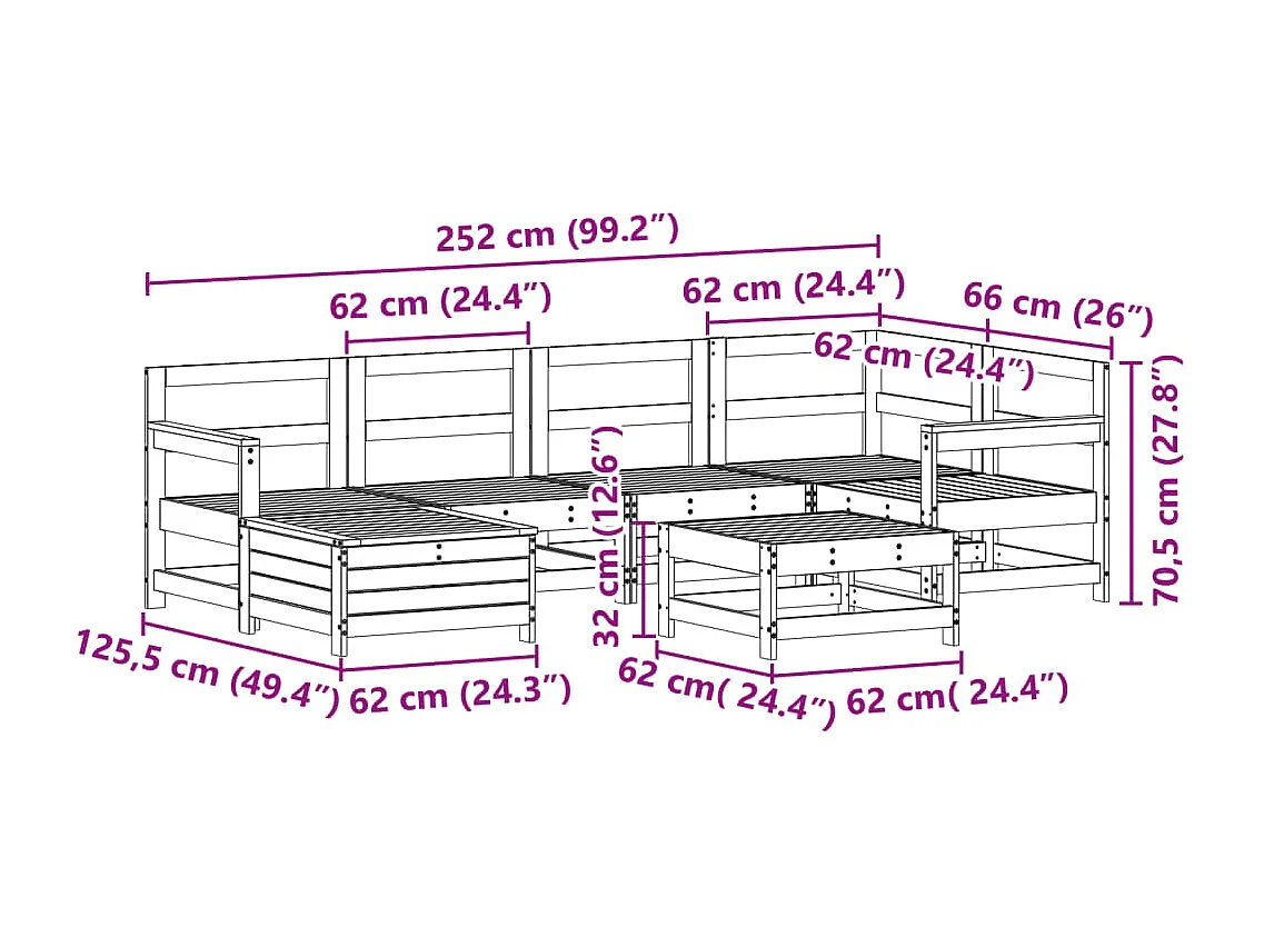 Juego de sofás de jardín 7 pzas madera maciza de abeto Douglas