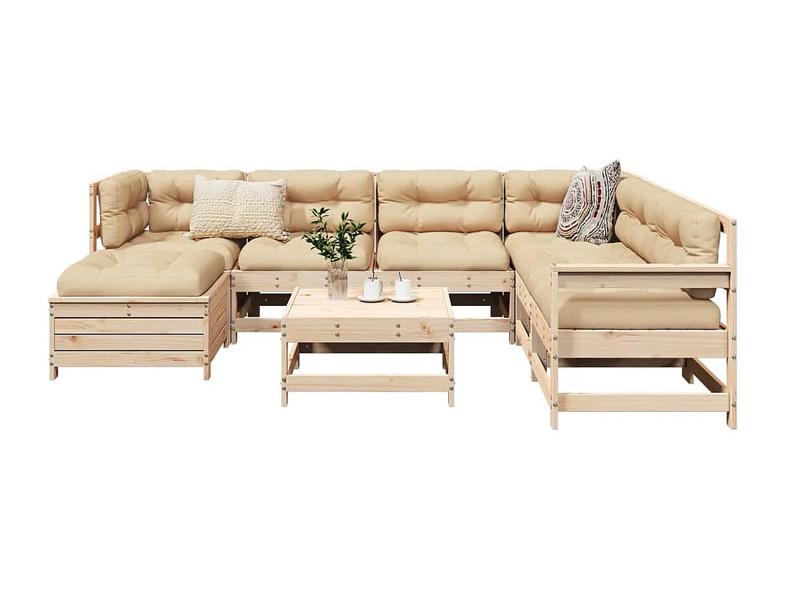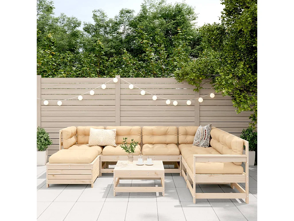 Juego de sofás de jardín 8 piezas madera maciza de pino