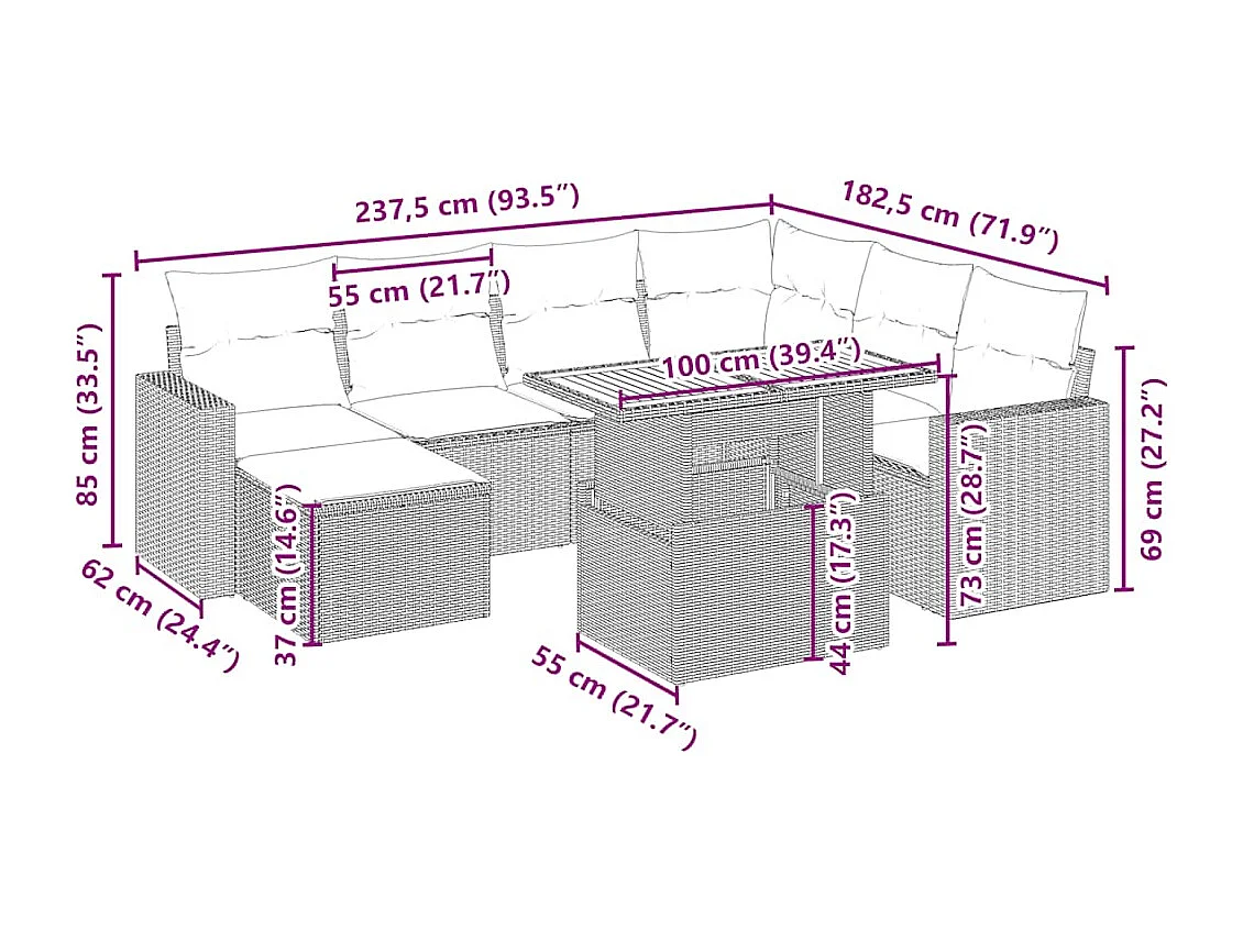 Set sofás de jardín 7 piezas y cojines ratán sintético beige