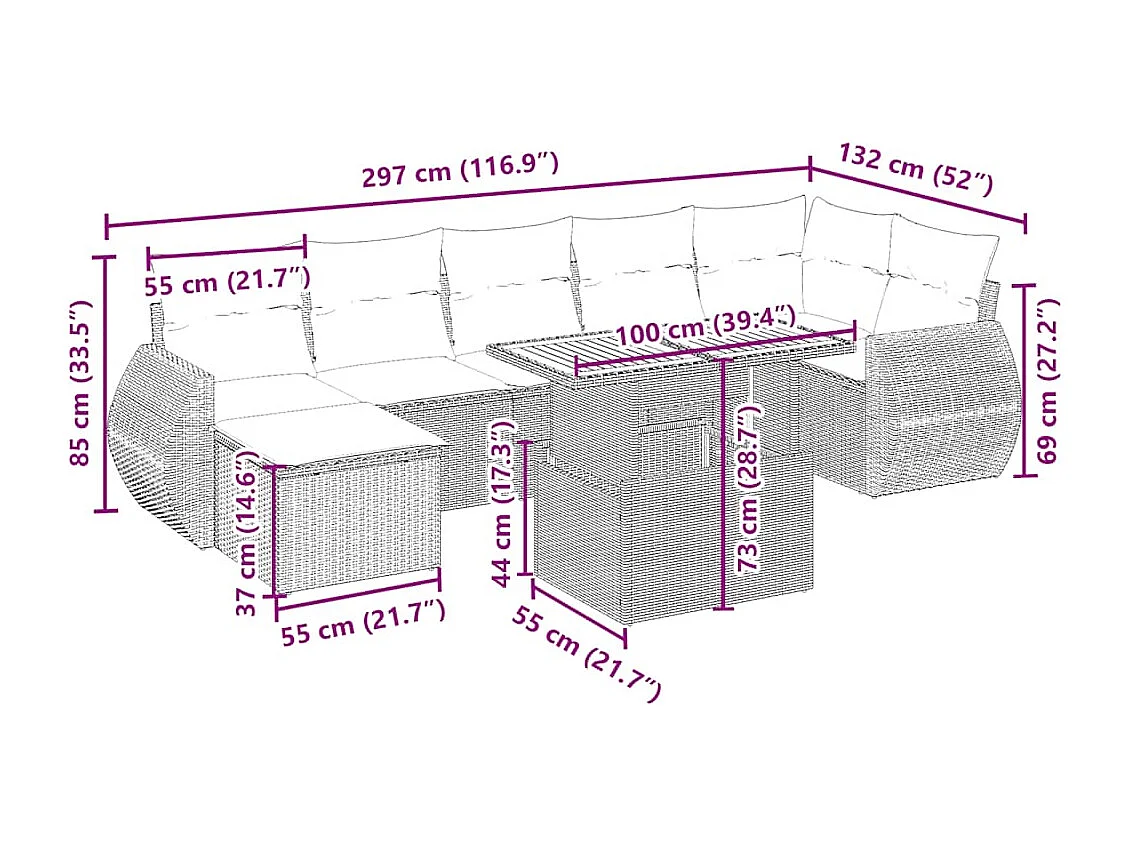 Set sofás de jardín 7 piezas y cojines ratán sintético beige