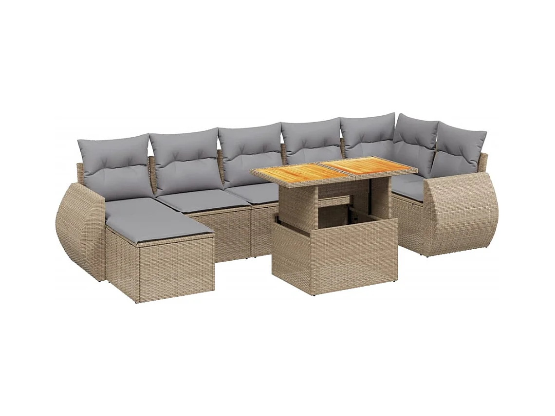 Juego de sofás de jardín con cojines beige 8 piezas ratán PE