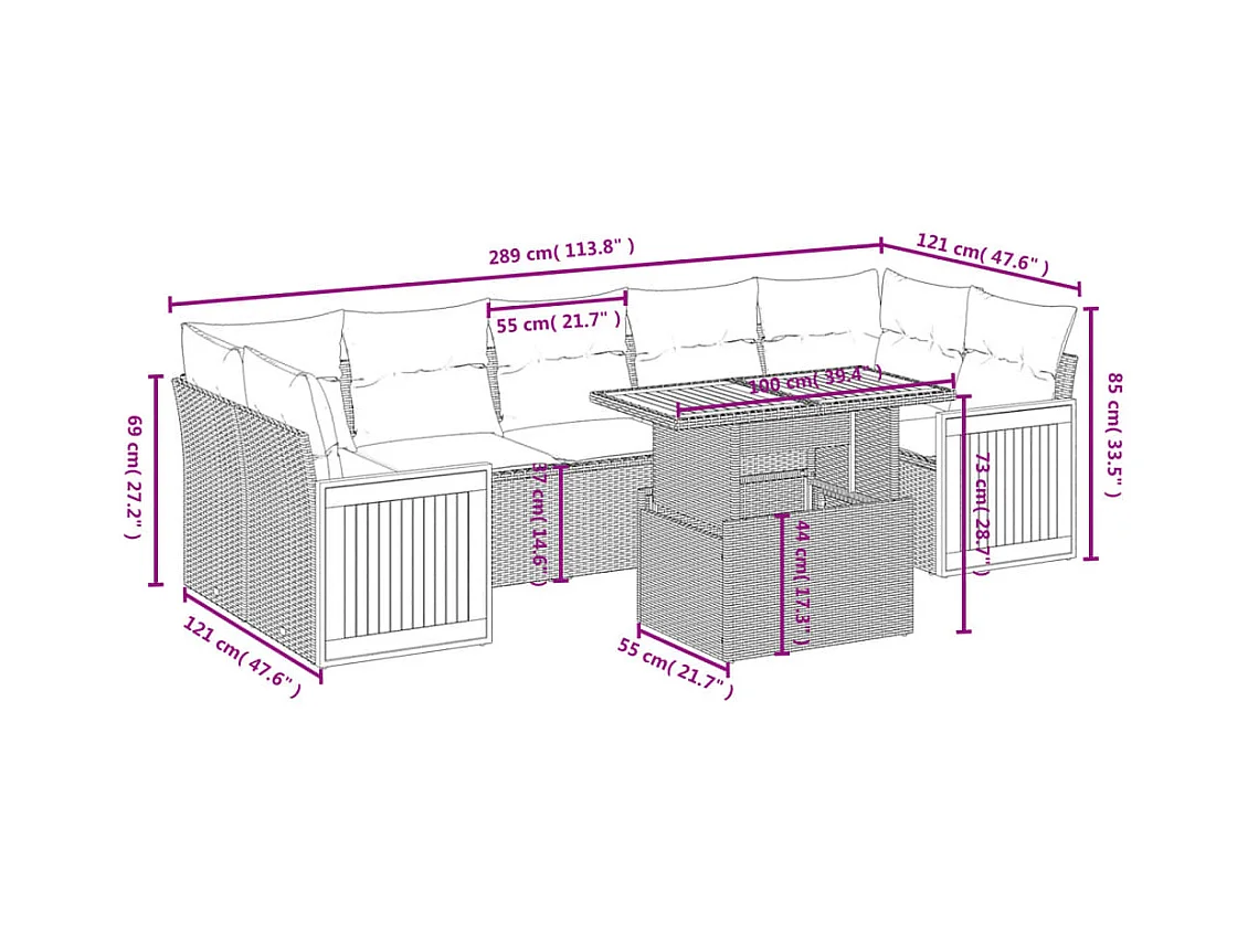 Set de sofás de jardín y cojines 8 piezas ratán sintético beige