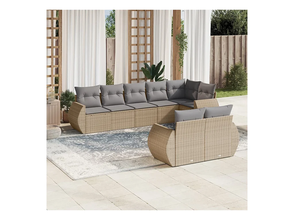 Muebles de jardín con cojines 8 piezas resina tejida beige