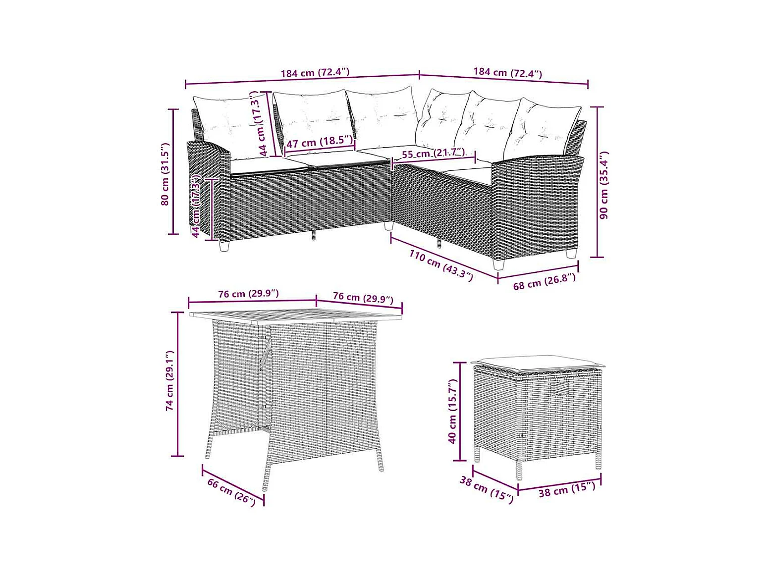Conjunto de jardín - sofá 2+1+1 plazas