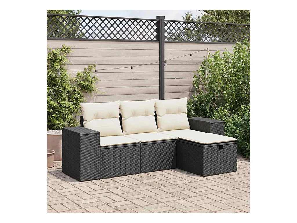Juego de sofás jardín 4 piezas con cojines ratán sintético negro