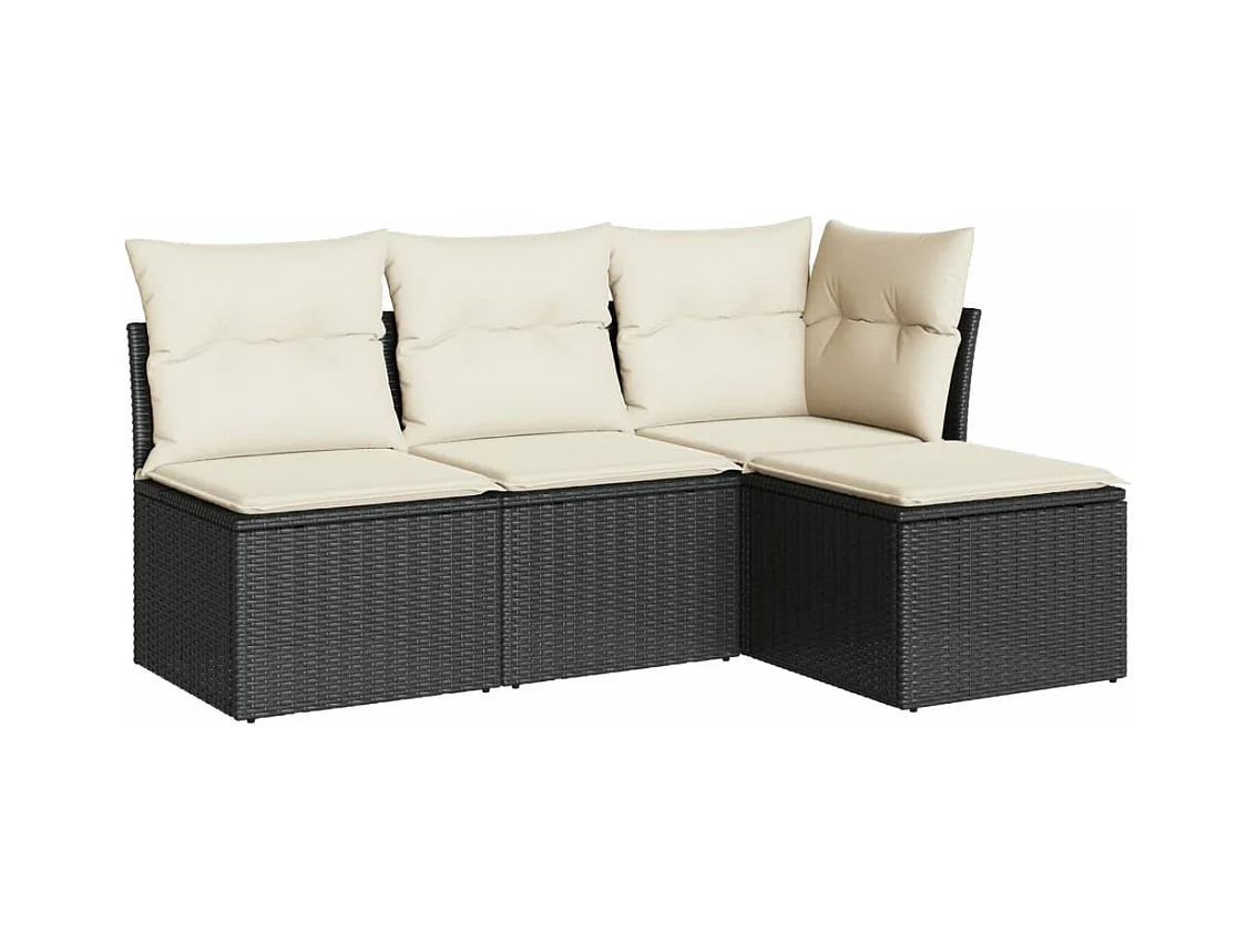 Juego de sofás jardín 4 pzas con cojines ratán sintético negro