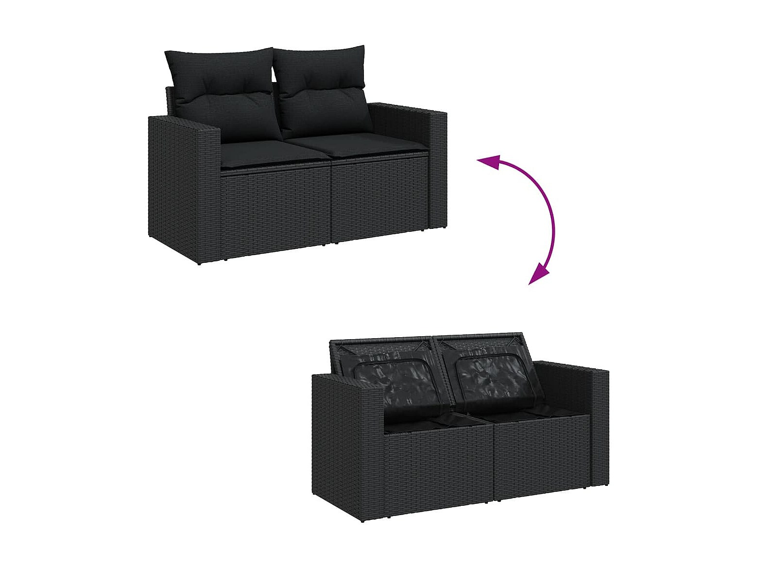 Set de sofás de jardín con cojines 3 pzas ratán sintético negro