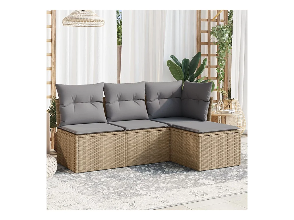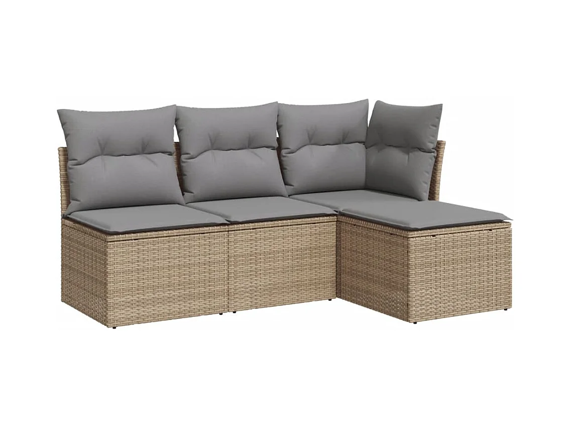 Juego de sofás jardín con cojines 4 pzas ratán sintético beige
