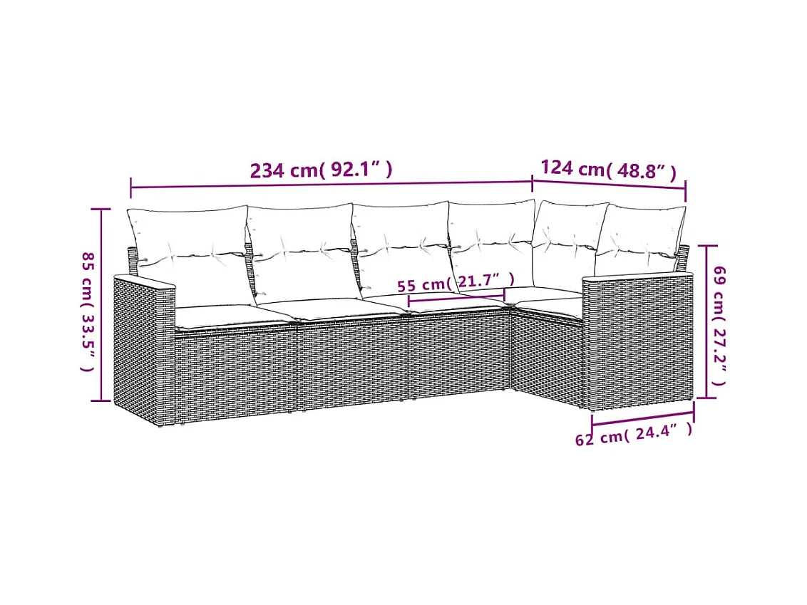 4 pzas Salón de jardín con cojines ratán sintético beige ES66275
