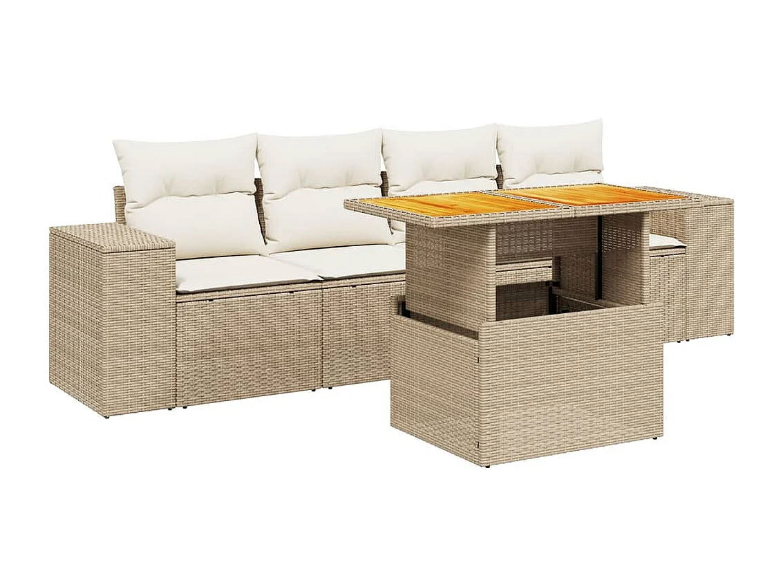 Juego de sofás jardín con cojines 5 piezas ratán sintético beige