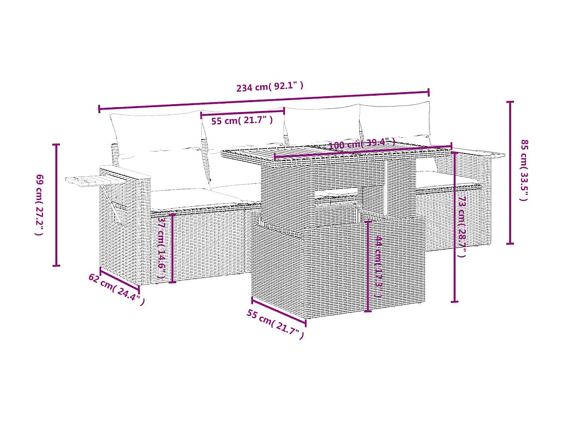 Juego de sofás jardín con cojines 5 piezas ratán sintético beige