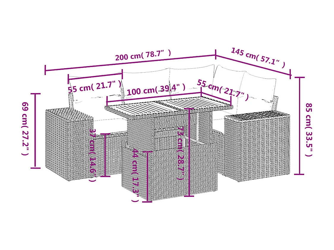 Conjunto de jardín - sofá 2+1+1 plazas