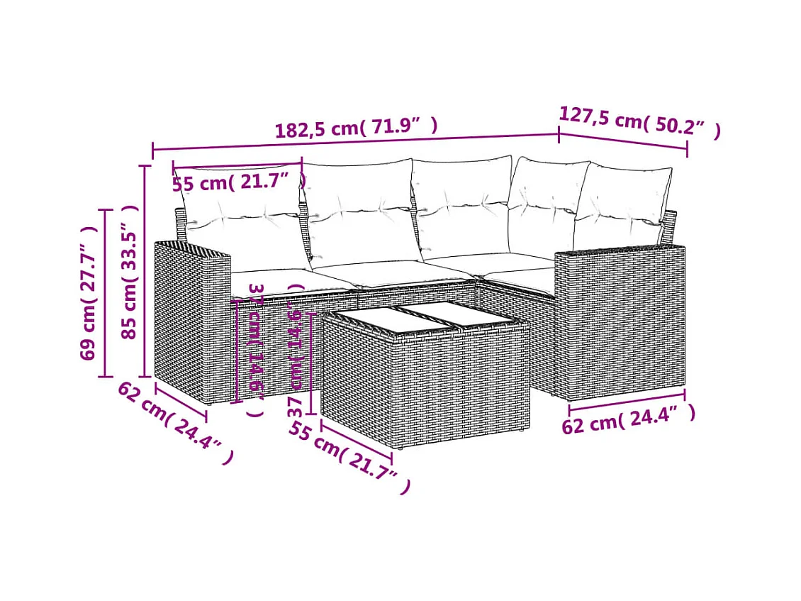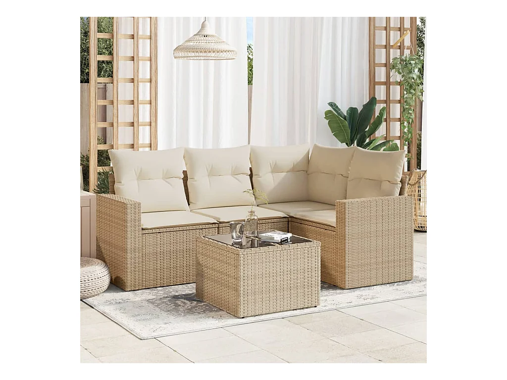 Conjunto de jardín con cojines 5 pzas ratán sintético beige ES339562