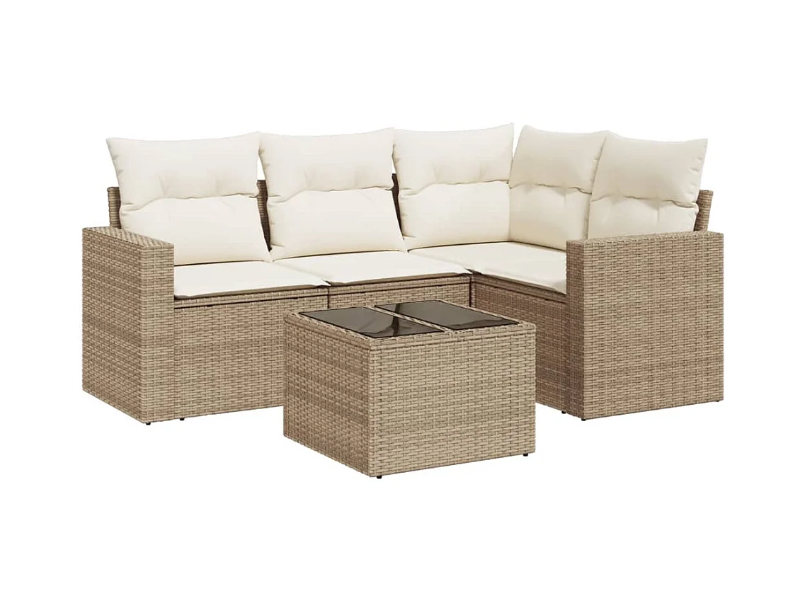 Conjunto de jardín con cojines 5 pzas ratán sintético beige ES515720