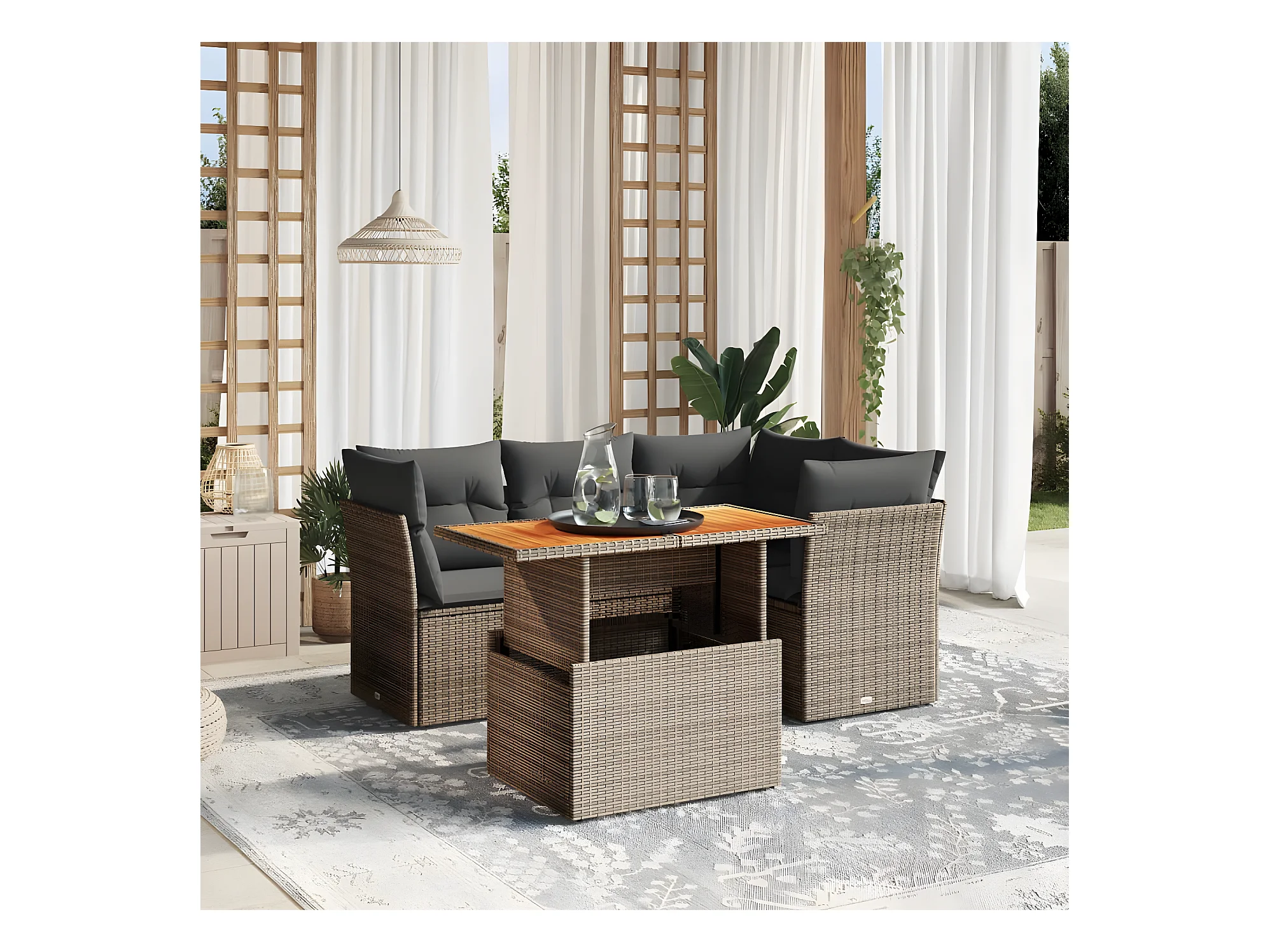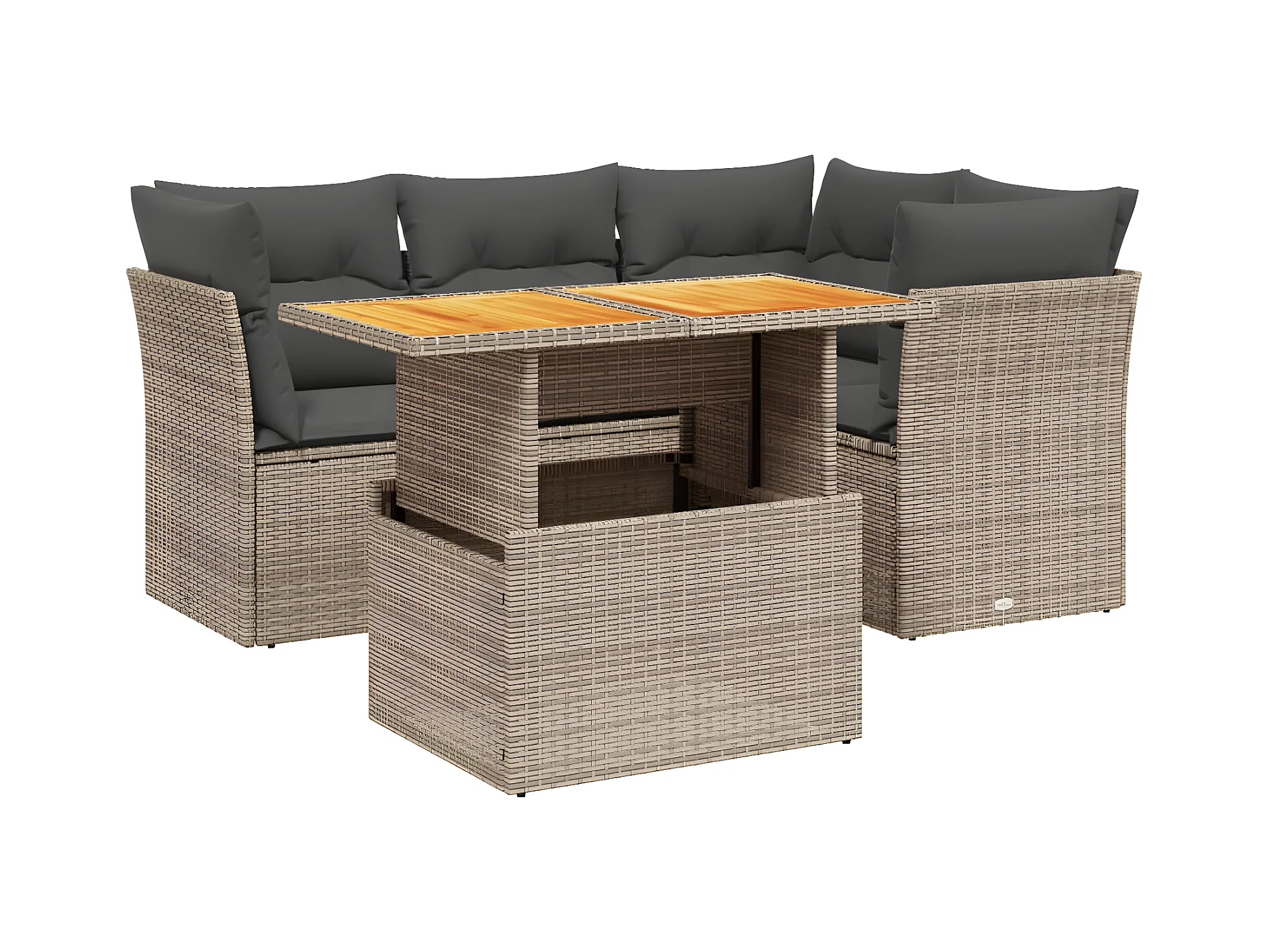 Juego de sofás jardín con cojines 5 piezas ratán sintético gris