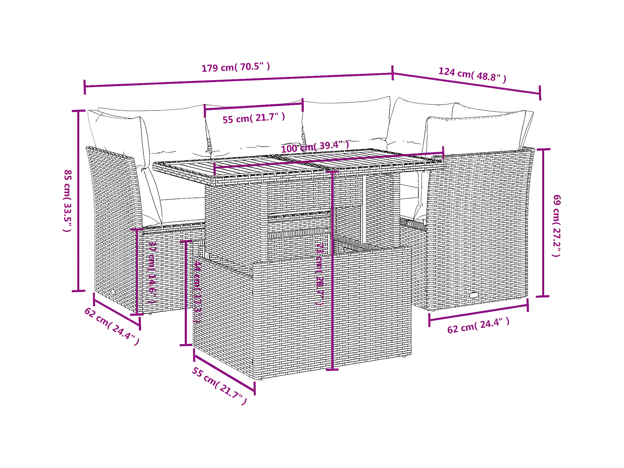 4 pzas Salón de jardín y cojines ratán sintético gris ES44581