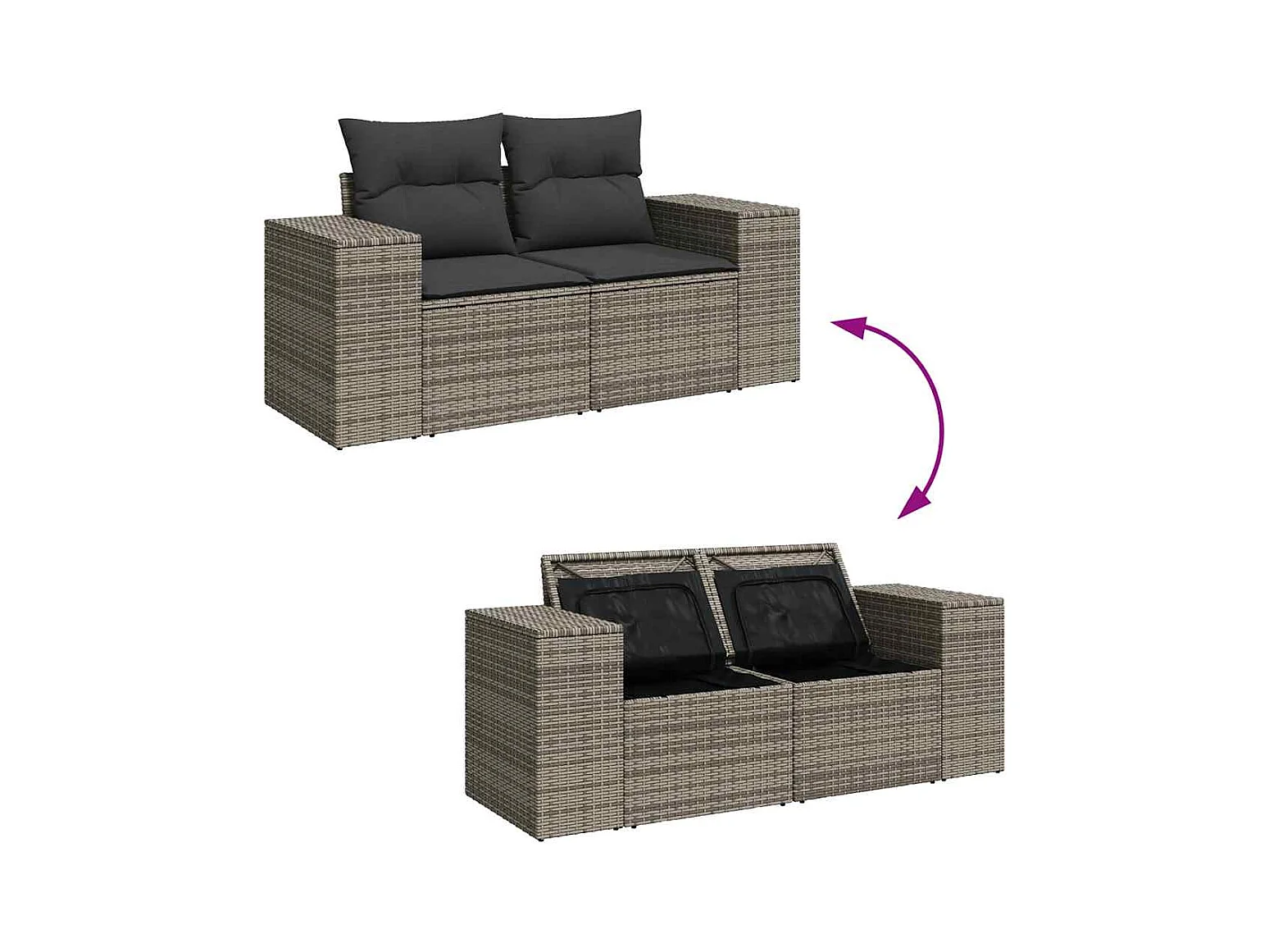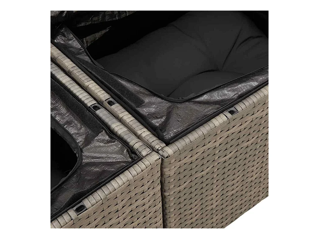 Set de sofás de jardín 4 piezas y cojines ratán sintético gris