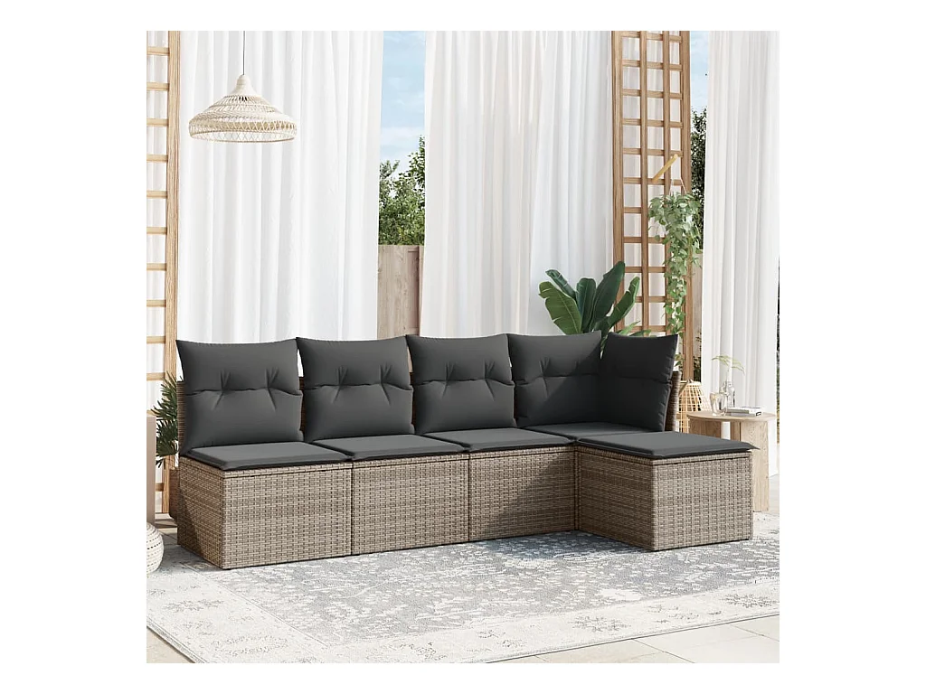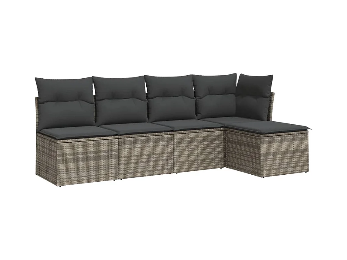 Juego de sofás jardín con cojines 5 piezas ratán sintético gris