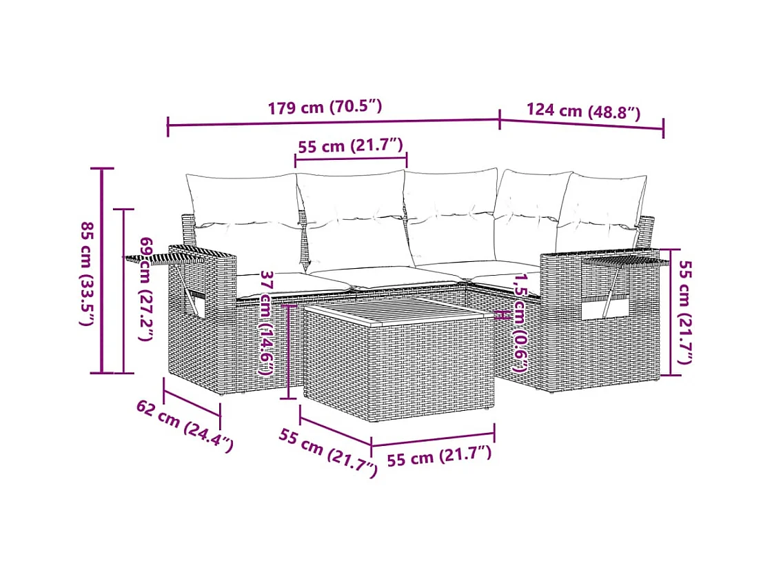 Conjunto de jardín - sofá 2+1+1 plazas