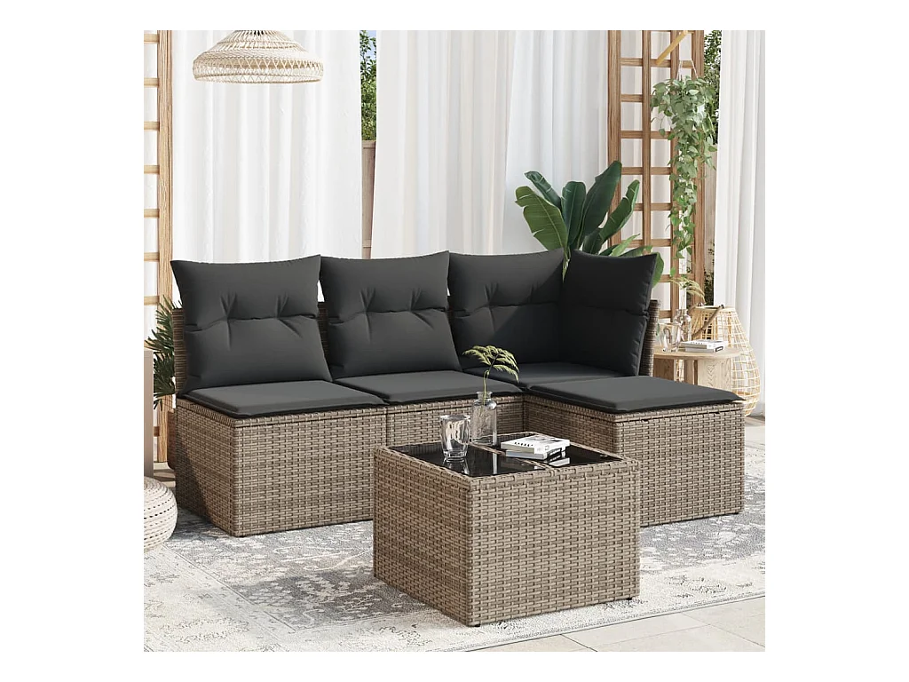 Set de sofás jardín y cojines 5 pzas ratán sintético gris claro