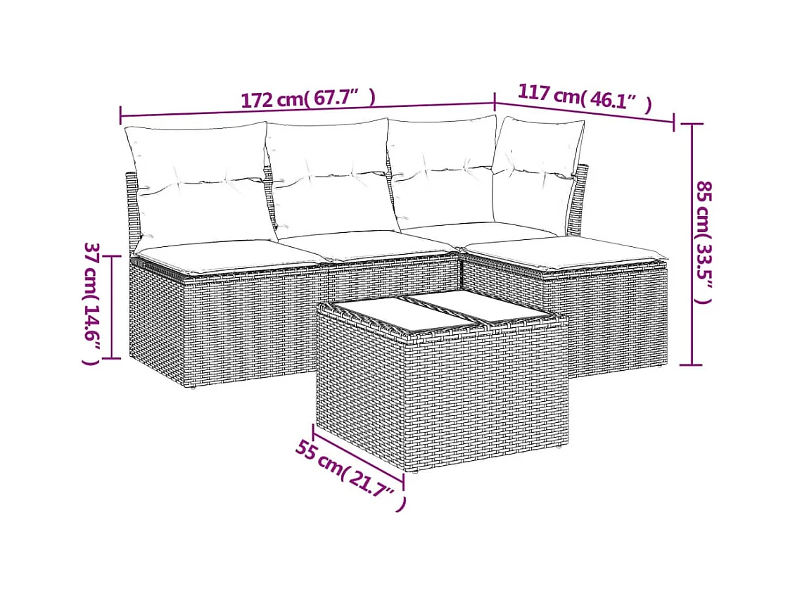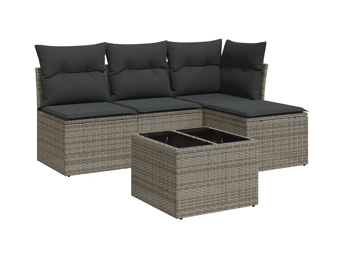 Set de sofás de jardín 4 pzas y cojines ratán sintético gris