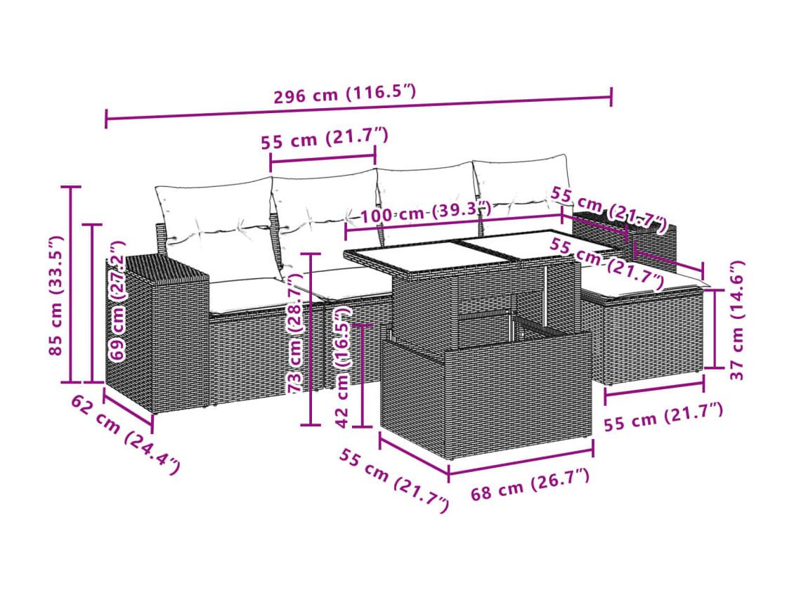 Set sofás de jardín 7 piezas y cojines ratán sintético beige