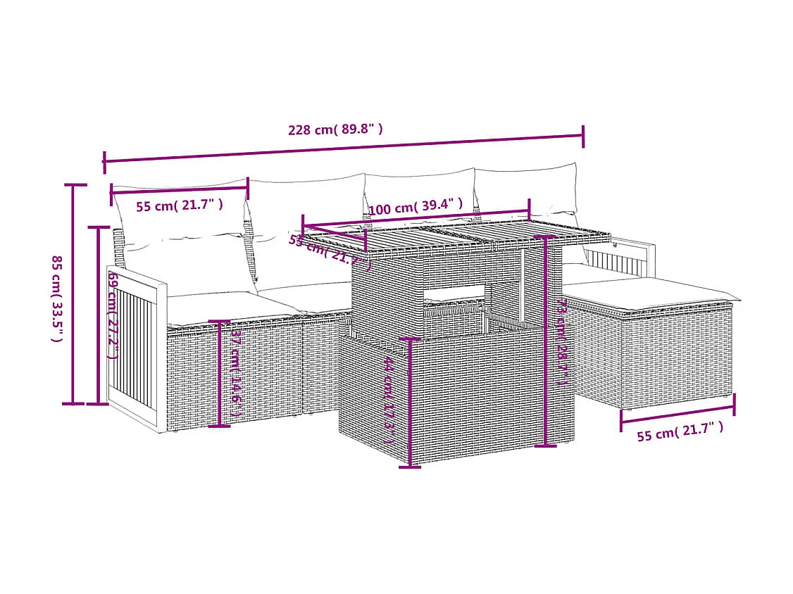 Juego de sofás jardín con cojines 6 piezas ratán sintético beige