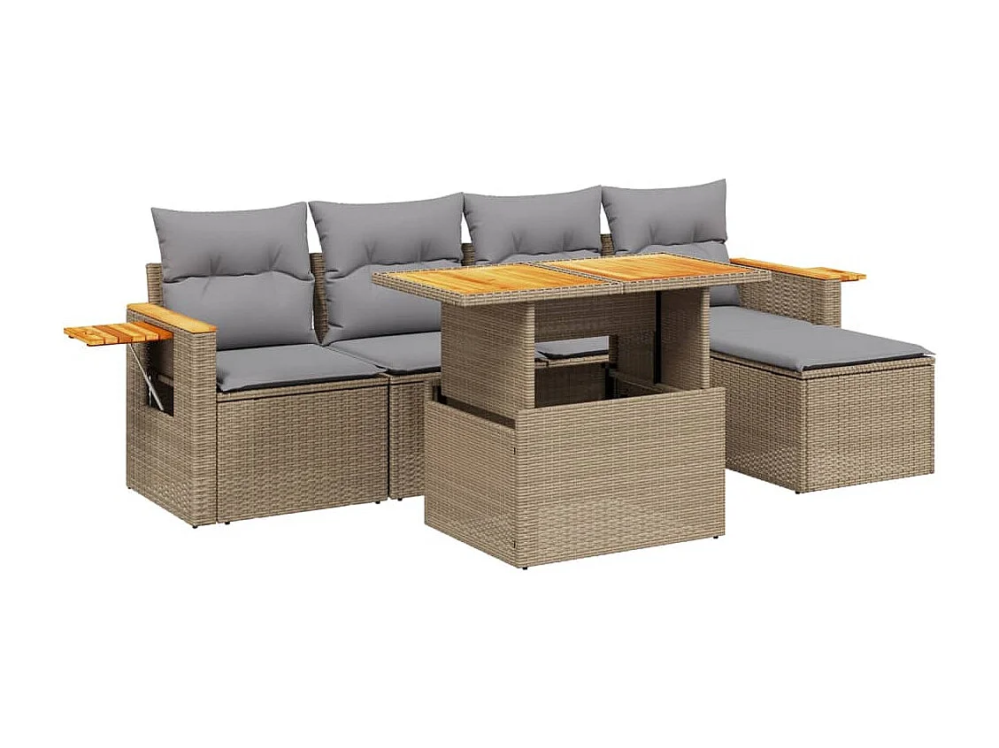 Juego de sofás jardín con cojines 6 piezas ratán sintético beige