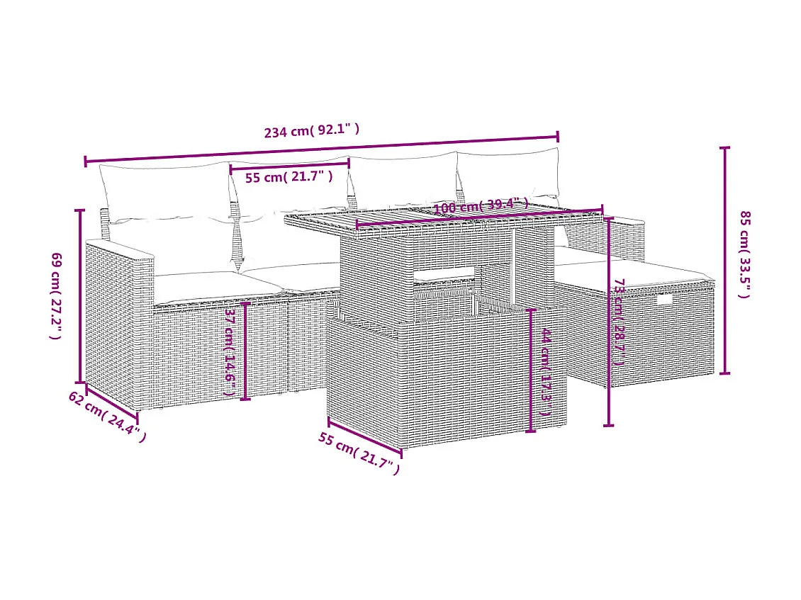 Juego de sofás jardín con cojines 6 pzas ratán sintético beige