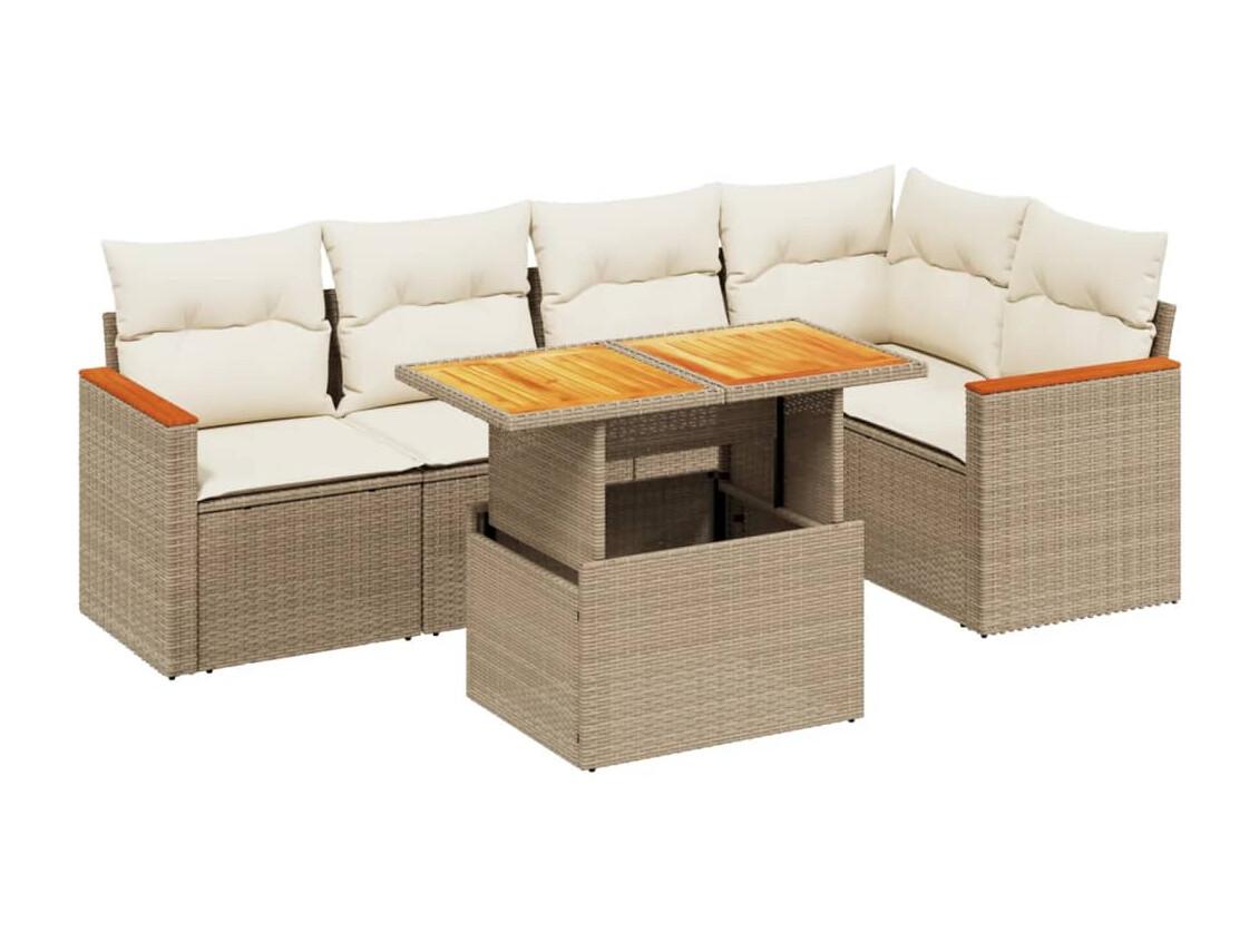 Juego de sofás jardín con cojines 6 pzas ratán sintético beige