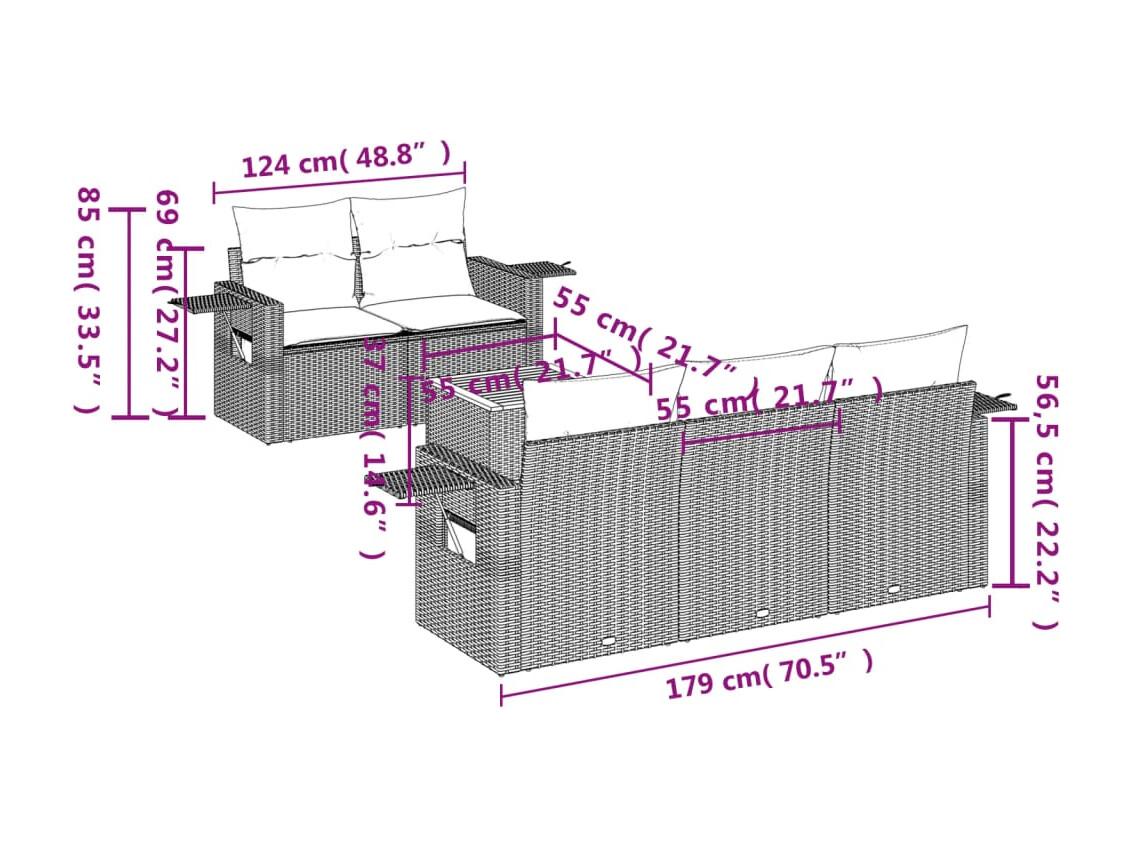 Juego de sofás jardín con cojines 6 pzas ratán sintético beige