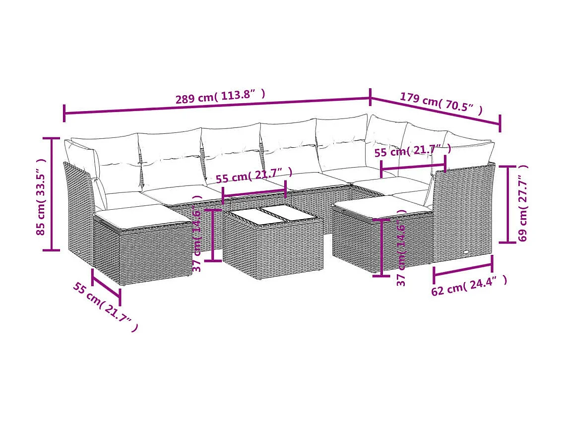 Juego de sofás jardín con cojines beige 10 piezas ratán sintético