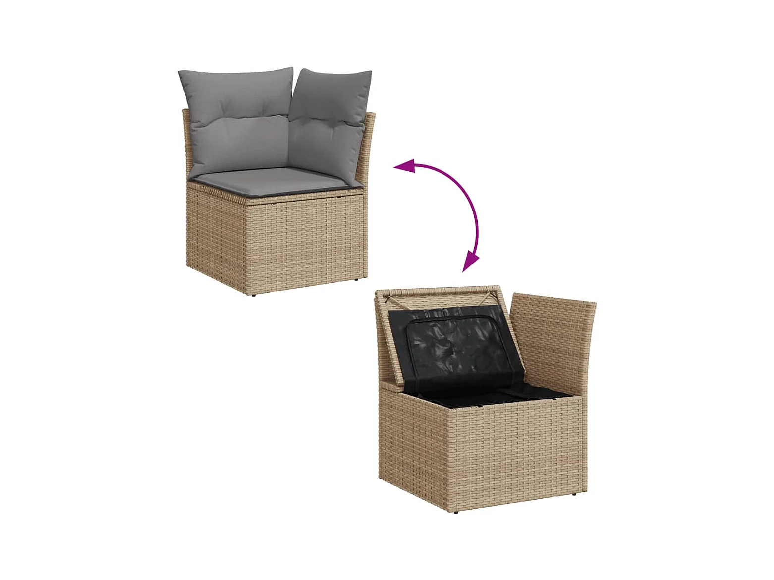 Set de sofás de jardín 9 piezas con cojines ratán sintético beige